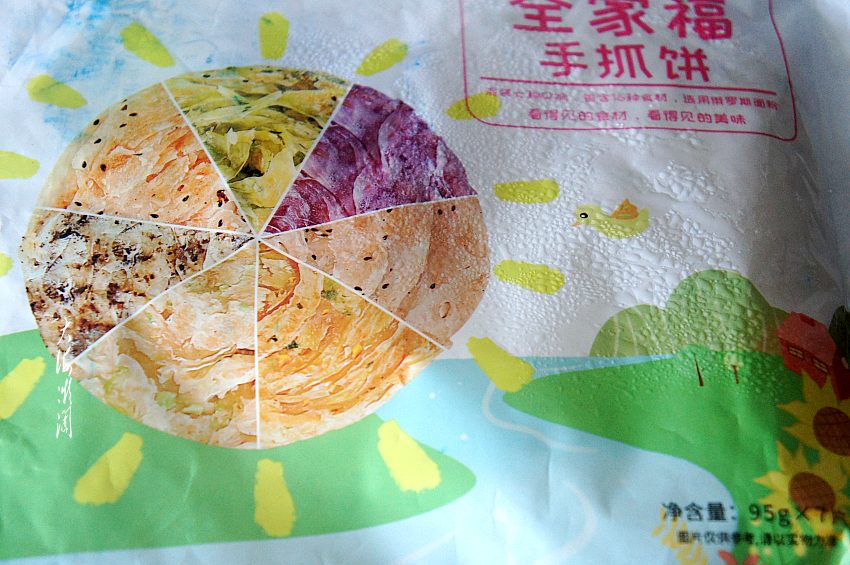 这一包是7种口味的手抓饼,可以烙也可以烤,做成小零食也是不错的选择。无论是烙还是烤,都不要过分解冻,饼很薄,完全化透就不好操作了,提前三五分钟取出来即可。