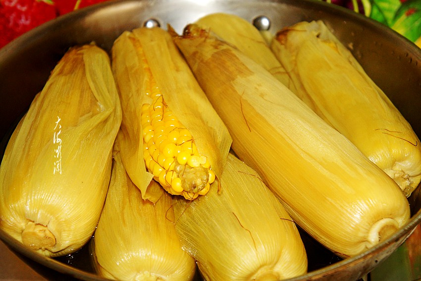 出锅,扒开玉米叶子看看,香甜的嫩玉米就煮好了,淡淡的咸味,很香甜。