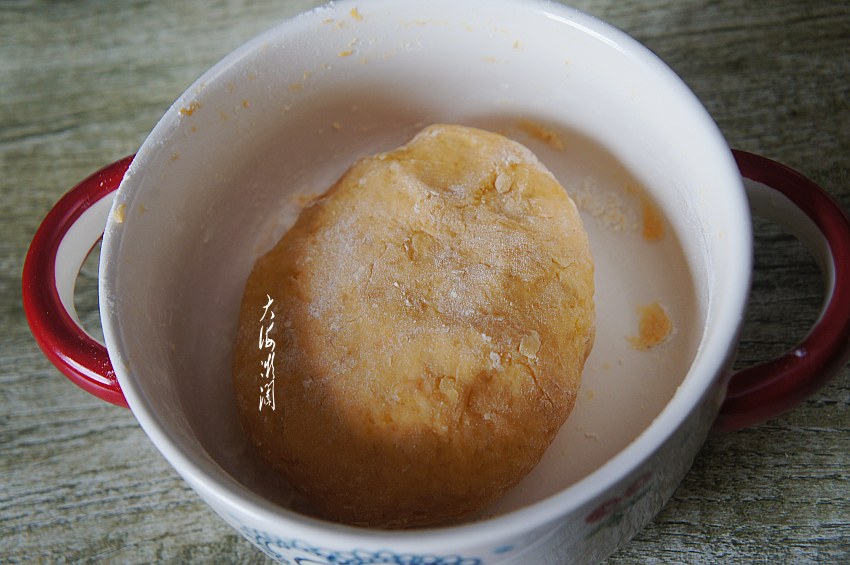 揉成面团后盖上保鲜膜或者扣上盖子松弛10分钟。