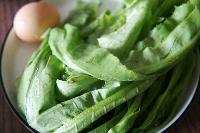 新鲜的油麦菜,在淡盐水中浸泡10分钟左右,然后反复清洗干净。1个鸡蛋要选择大个头的,或者换成2个小鸡蛋。