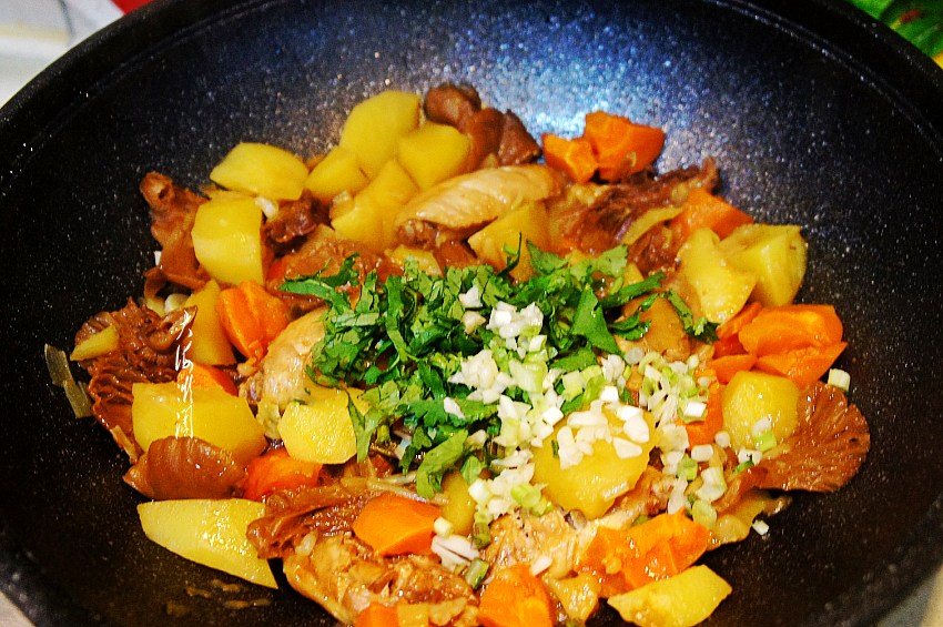出锅,这一锅翅中鲜嫩,土豆滑糯,胡萝卜软烂,元蘑真是太香了,吃得太过瘾了,绝对是好吃到停不下来的感觉!