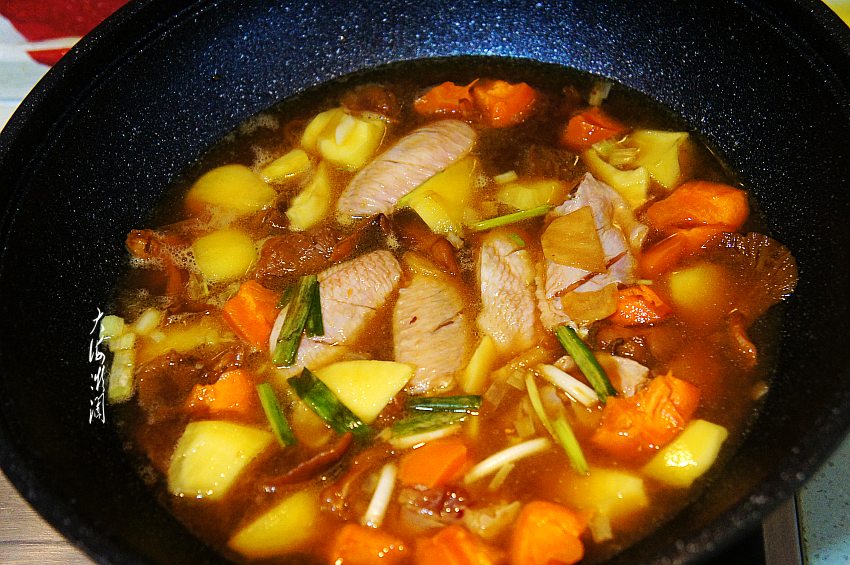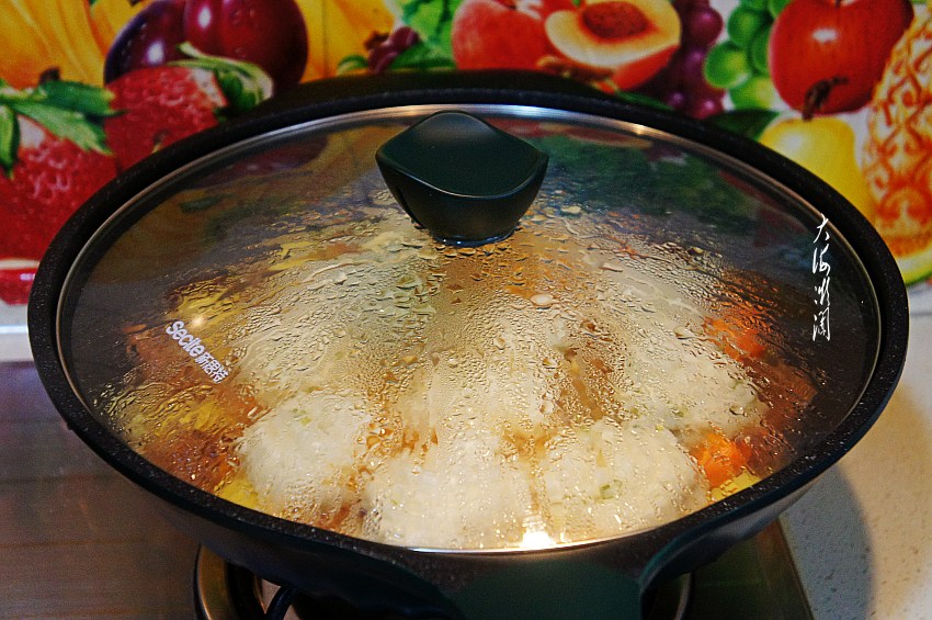 盖上锅盖,中小火炖约30分钟,我用的是不粘锅,可以炖的时间长一点,普通炒锅炖15分钟左右就OK了。