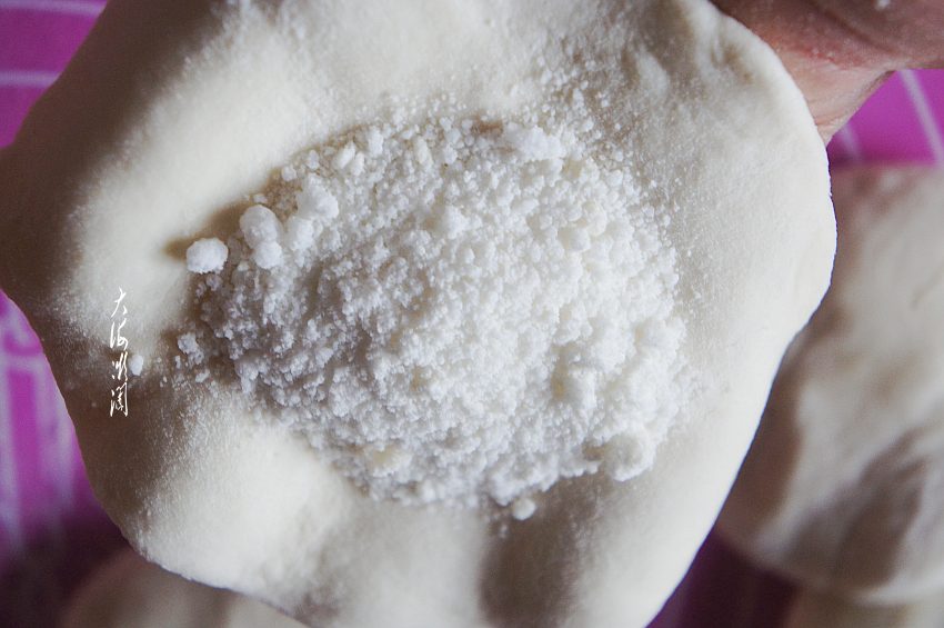 4、包白糖时,在白糖中兑点面粉,避免烙饼时白糖流淌出来。