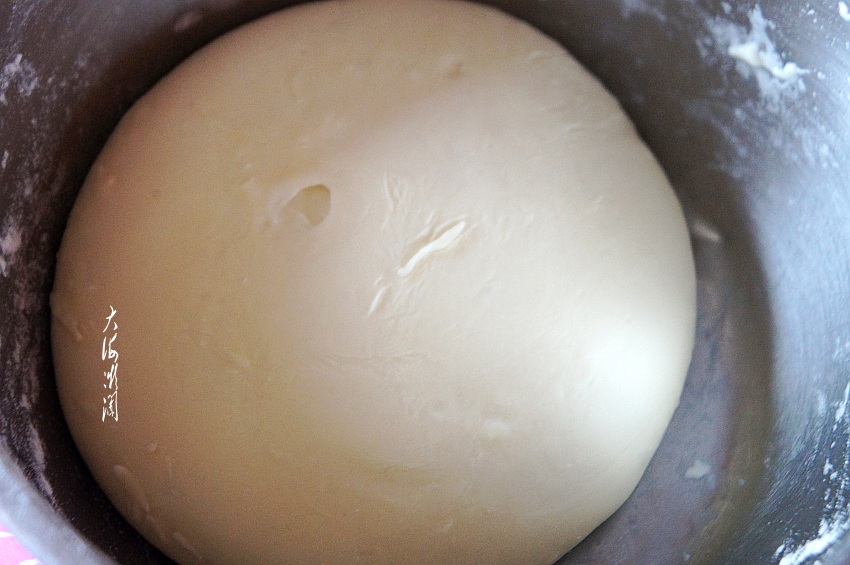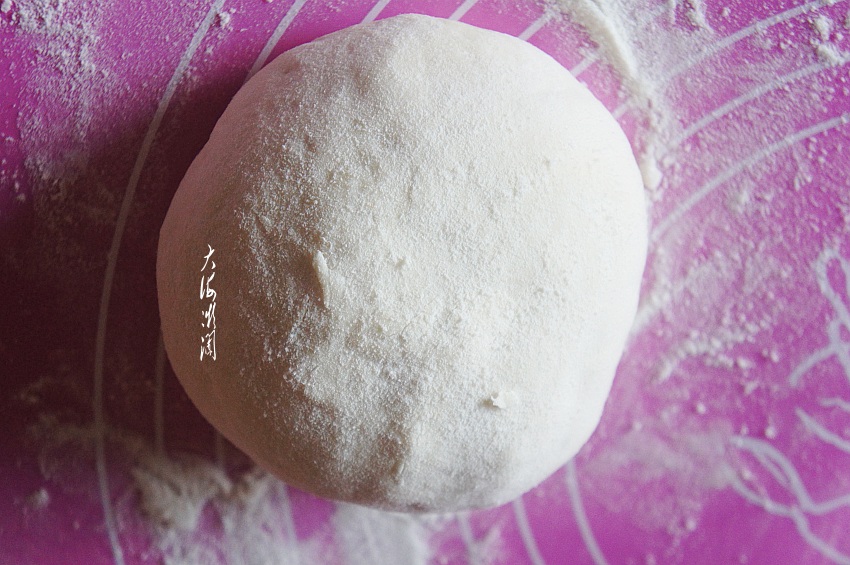 3、很关键的小技巧就是要按比例加小苏打综合面团,记住小苏打和面粉的比例1:100.而且一定要揉匀,否则会出现黄色的碱点,影响视觉和食欲。