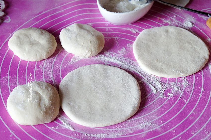 这饼最大特点不用酵母,是用老肥发面做的,不用二次发酵。每次都从上一次发好的面里揪下一块,留做酵头,北方人叫它面引子,有了它发酵速度会加快,当然比起酵母还是要慢一些,所以想吃发面饼,前一天晚上把面发上,第二天早用刚刚好,夏天的时候需要放冰箱冷藏发酵,这个季节,晚上很凉爽,直接发酵就好,不会发过头的。
