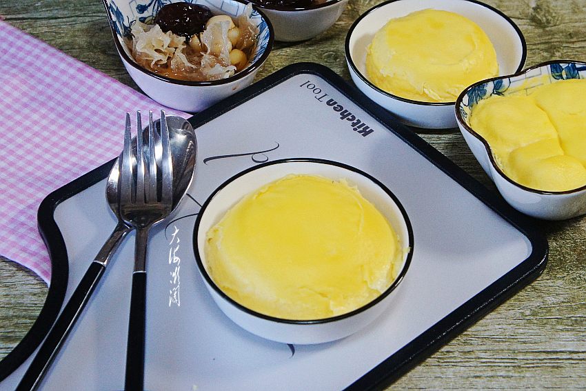 出锅,倒扣盘中脱模,不想脱模的直接在碗里挖着吃更方便。