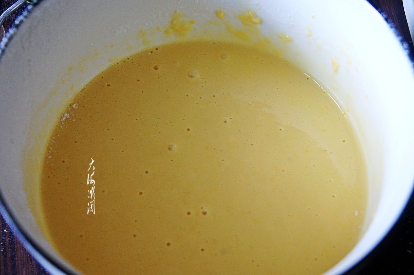 再加入适量的纯净水,调成面糊,或者再加入一个鸡蛋也可以,不要太稀。