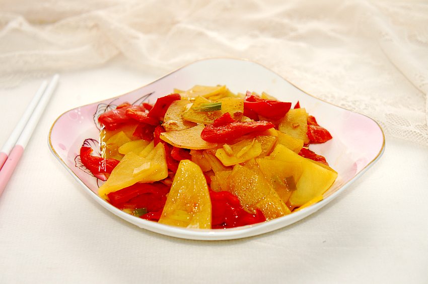 这菜看着就有食欲吧,这也是一道人气爆棚的家常菜,不足2元钱炒一盘,物美价廉,好吃还有营养。辣椒含有一种特殊物质,能加速新陈代谢,达到燃烧体内脂肪的效果,从而起到减肥作用,而且对皮肤有很好的美容保健作用,是女性的“补品”。土豆被称为“十全十美”的食物,也是众所周知的抗衰老的食物,有很好的呵护肌肤、保养容颜的功效,同时因含有丰富的膳食纤维可以起到通便排毒和清肠刮油的作用。减肥的路上,这两种食材可是非他莫属。那么这道减肥又美容的家常菜怎么做才好吃呢,接下来一起看看具体做法吧。