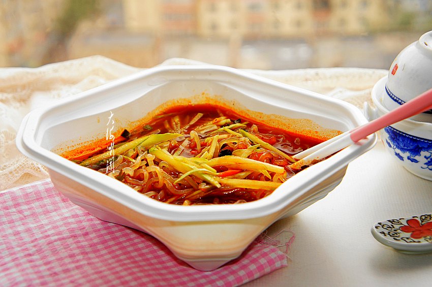这是一盒重庆酸辣口味的魔芋粉,辣味十足,如果你不能吃辣,切记:调味酱包就适量加吧,否则能辣到你哭。喜欢吃辣的同学就有口福了,这一盒吃下去,那是相当的过瘾了。