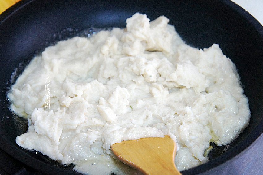 2、炒莲蓉馅时,一定要用不粘锅哈,否则容易糊锅粘锅,莲蓉馅还不够绵软。