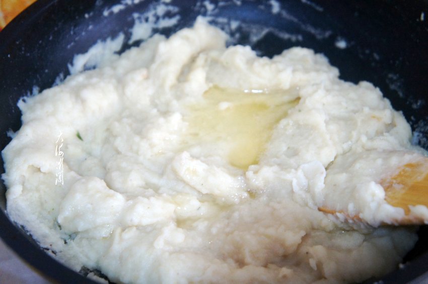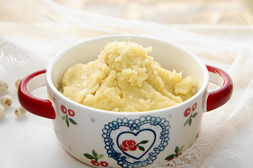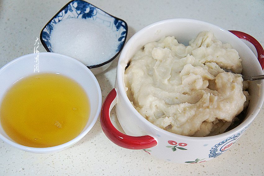 大约半小时就煮好了,煮至一碰就碎即可,留一点汤汁便于打碎。