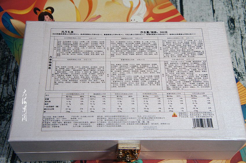 在礼盒的背面,每一块特色月饼都有详细的配料说明,本来还有心动复刻的欲望,看了配料后主动退缩了,还是买来吃更方便哈。