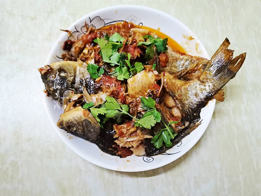 第三道菜:酱焖鲫鱼。秋季是吃鲫鱼的好时节,也是进补的好时机,鲫鱼肉嫩味鲜,无论做粥、做汤、做菜、做小吃等都是进补的最佳选择,鲫鱼味甘、性平,具有健脾、开胃、益气、清热解毒之功效。这次用了香其酱,小朋友最喜欢的口味,酱香,肉嫩,味道极其的鲜美,而且几乎个个都含有饱满的鱼子,真叫一个香!格外的香!
