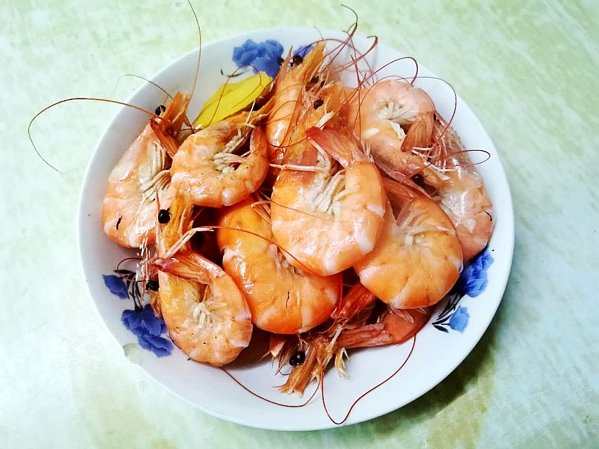 第二道:白灼虾。虾是烹调里不可多得的好食材,肉质细嫩,味道鲜美,做法简单,营养价值高,而且还没有腥味和骨刺,特别适合老人孩子补充营养和钙质。你知道双节大虾多少钱一斤了吗?我们这边已经38元一斤啦,比平时整整涨10元。虾的食用方法也很多,一虾多吃,由它制作的菜肴也是数不尽数,有菜中之“甘草”的美称。最简单的做法就是白灼,原汁原味,调个料汁蘸着吃,太好吃了,百吃不厌。