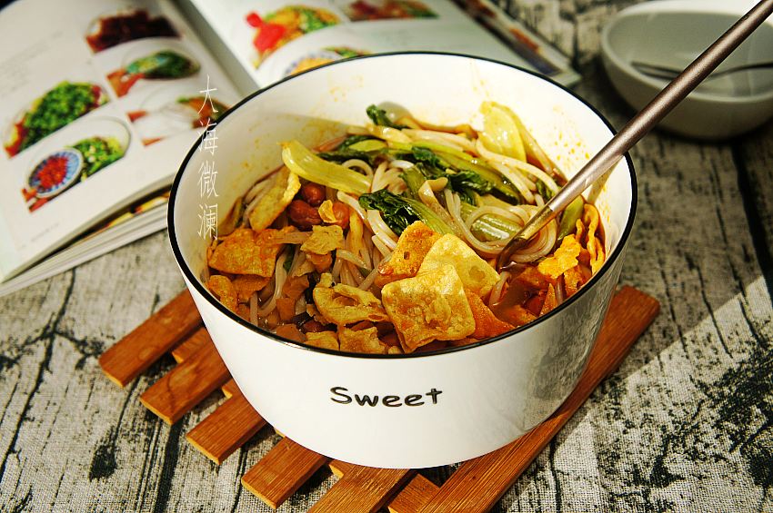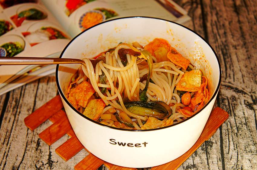 出锅,倒进碗中,加入花生包拌匀,开餐啦,看着就有食欲吧!