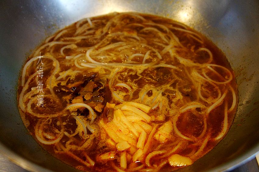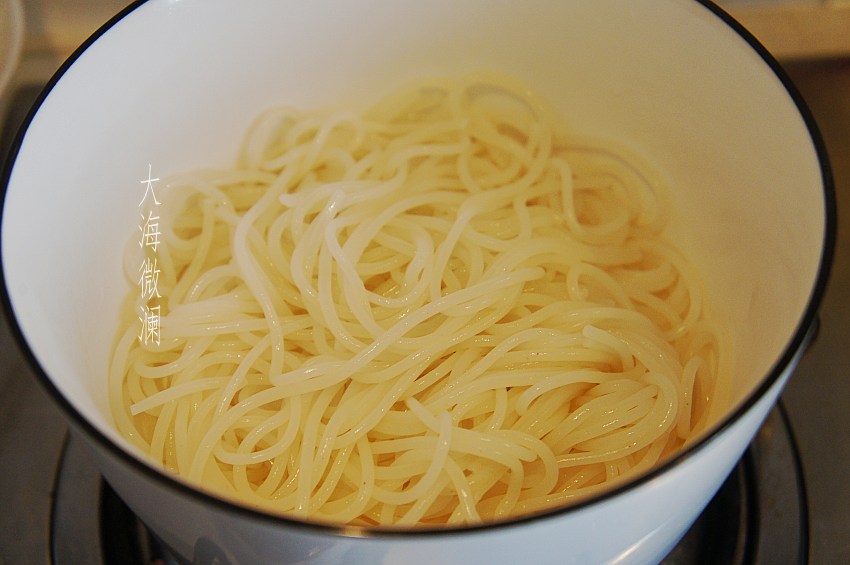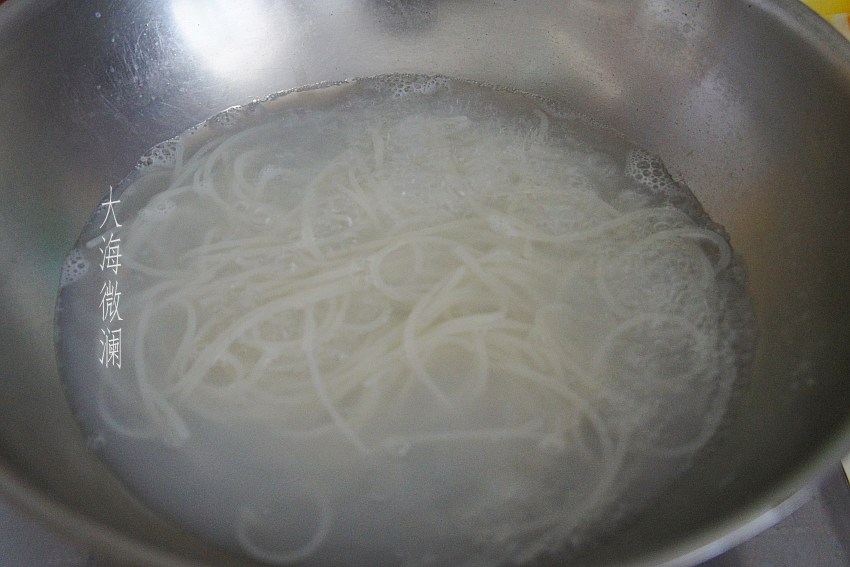 先煮米粉,锅中加入适量的水,米粉冷水下锅,煮12~15分钟左右,依据自己喜欢的口感而定,喜欢吃软的就煮15分钟。