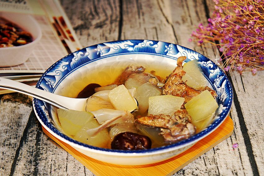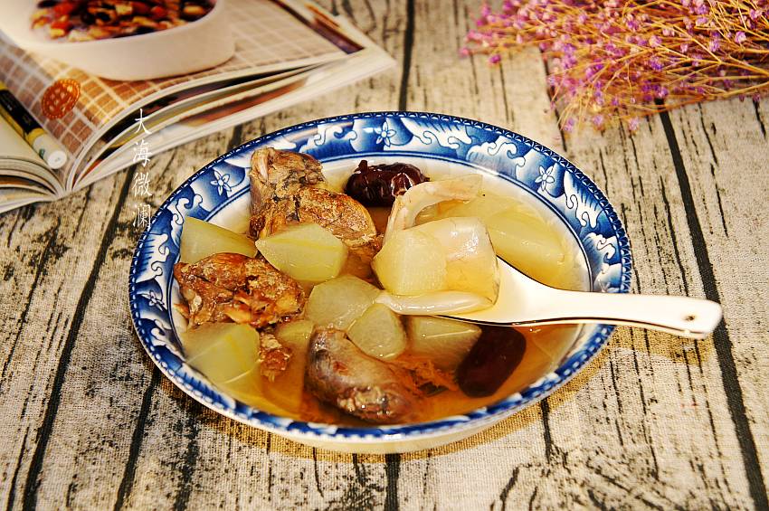 今天给大家推荐一道冬瓜甲鱼汤,双节假期有时间,给家人煲个汤吧!这汤不腥不腻,味道极其鲜美,大鱼大肉都不如吃它,不但大补,还有乌发润肤抗衰老的作用。深秋时节,滋补强身很重要,记得多喝这汤,甲鱼本身含有蛋白质、脂肪、钙、铁等多种营养成分,它不但味道鲜美、高蛋白、低脂肪,而且是含有多种维生素和微量元素的滋补珍品,常食能调阴清热,滋阴潜阳,使人体阴阳恢复到相对平衡的状态,从而达到强身健体、祛病延年的效果,尤其适宜于中老年及体质虚弱者进补。