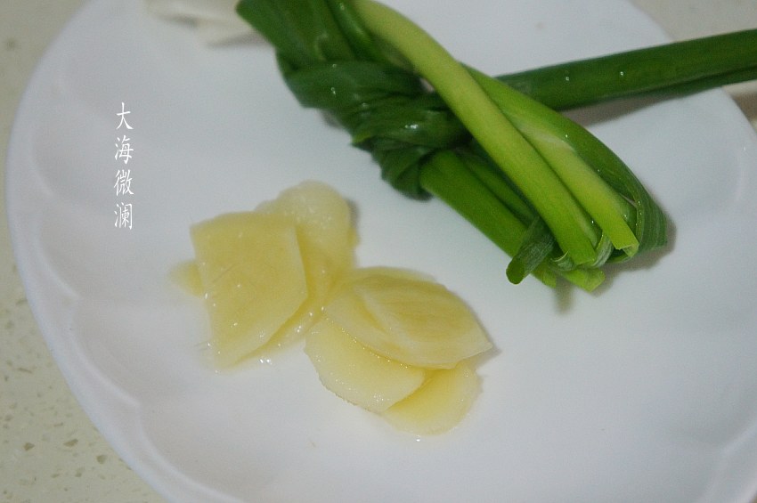 葱去皮洗净卷成卷容易取出,姜去皮洗净切片。