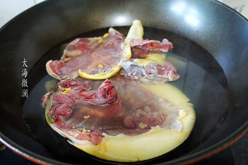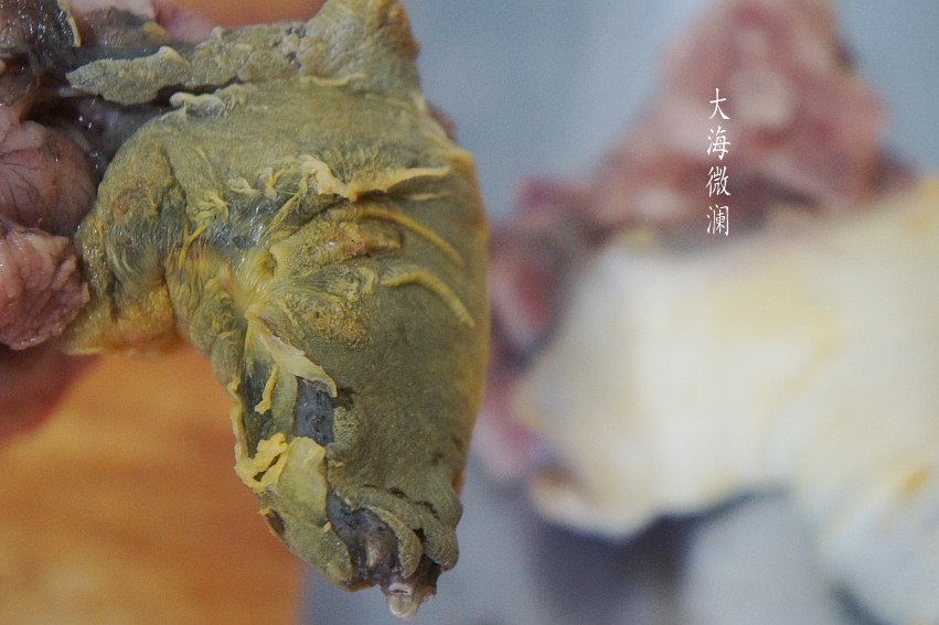 刮净甲鱼全身各部位黑皮和老皮,这道程序其实也很简单,烫后的甲鱼老皮轻轻一刮就掉下来了。用清水反复清洗干净,仔细检查有没有漏掉的地方。