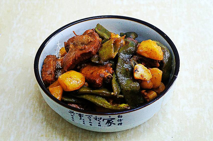 给大家分享一道营养又美味的家常菜,地道的东北农家菜,排骨炖豆角,加几个土豆更好吃,东北人的大爱。天一冷,家人就馋这道大炖菜,热乎乎的炖一锅,有肉有菜,荤素搭配,老人孩子都爱吃,寒露过后,秋冬之交,这菜最受欢迎,排骨的软烂,土豆的香滑,吃一口就是停不下来的感觉,而且营养价值特别高。一场秋雨一场寒,不下雨就是冷风嗖嗖,秋凉气候干燥,汗液减少,正是人体阳气收敛,阴气潜藏体内的时候,应该抓住秋凉这个好时光,适当补充肉类等动物性食物,补益气血,滋补肺肾,恢复脏器活力,增强抵抗力。