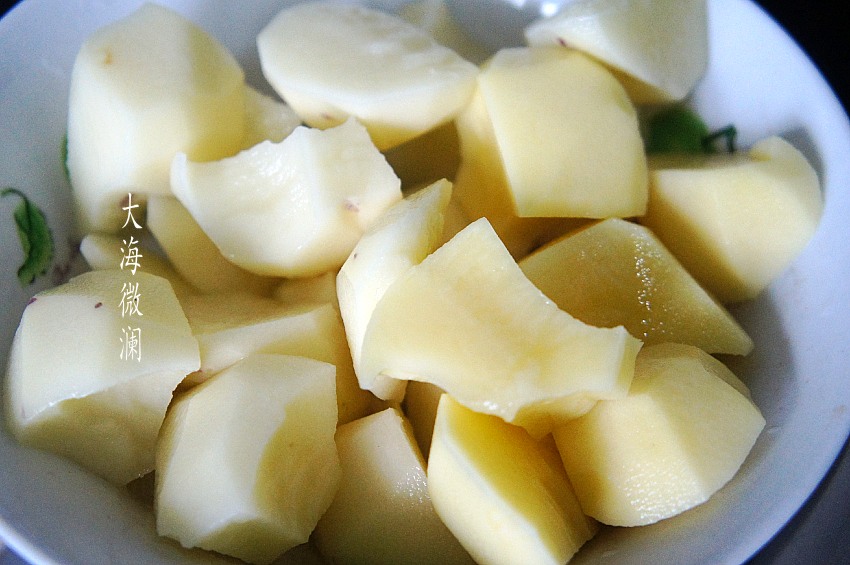 土豆切滚刀块,土豆如果再小一点更好,不用切,整个小土豆炖着吃特别好吃。