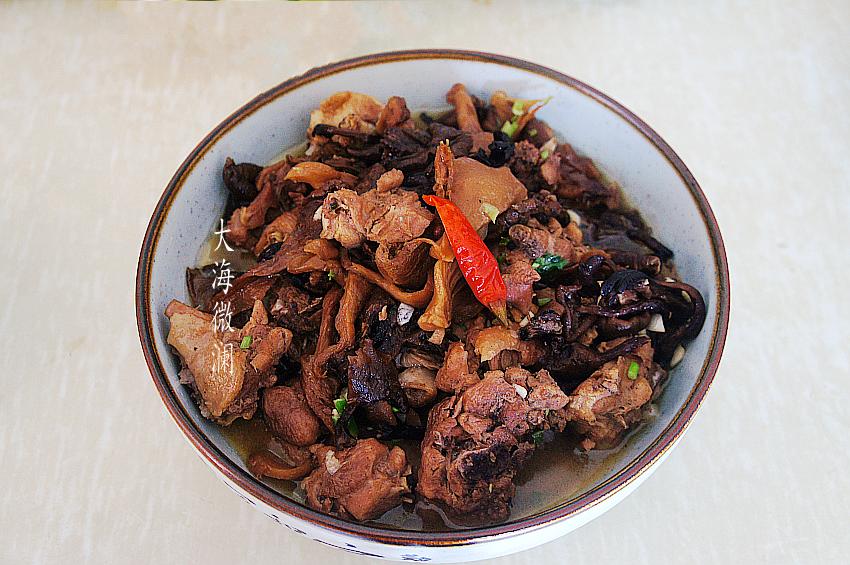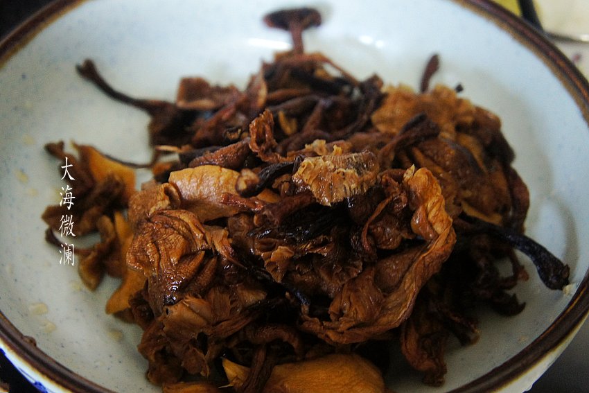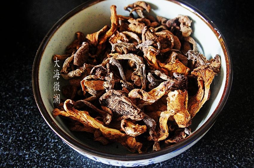 这就好朋友送来的干蘑菇,细长且颜色发深的是榛蘑,宽大黄色是元蘑,都是东北珍贵的蘑菇品种,这蘑菇需要清洗后提前用冷水泡发,大约要泡发2~4小时以上,再反复清洗干净。