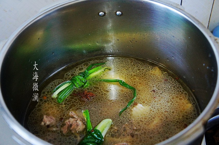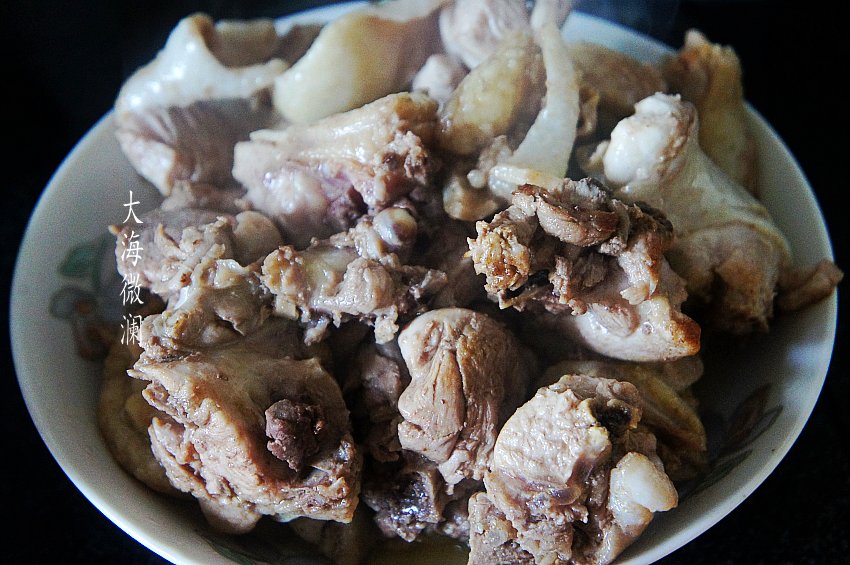 根据自己的喜好斩成大小合适的块儿,冷水浸泡出血水,大约浸泡1小时左右,然后洗净控净水分。