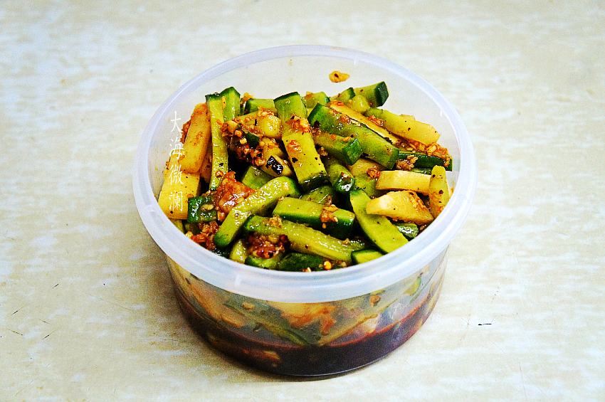 搅拌均匀后,一顿吃不完可以放在玻璃罐子中,如果腌的多,可以放入坛中冰箱冷藏,放上半年没问题。想吃随时都可以拿出来食用,非常的方便。