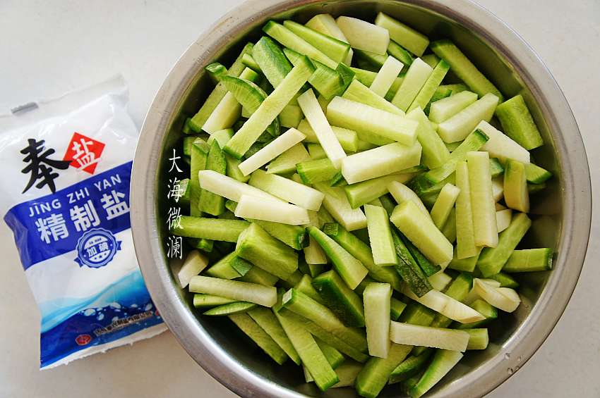 自家腌制萝卜条,不用晒干,但是必须挤压出萝卜中的水分,所以,记住加盐后的关键步骤,是要压上重物,挤压出水分再加调味料。