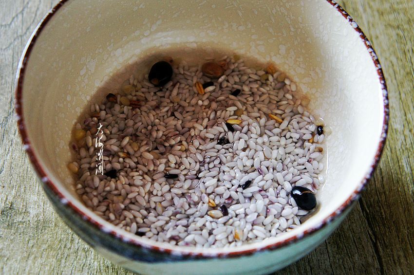 准备食材:取一杯多谷米,反复淘洗干净。多谷米是网购的杂粮米,包含有8种米,大米、玉米糁、黑米、黑大豆、黄豆、粳糙米、高粱米、大麦米和燕麦米等多种食材,其中大米属于糯米类型,所以煮粥很黏糯。这米不但营养丰富,而且口感好,味道浓,打开包装,香气宜人,焖饭、煮粥、做米糊,怎么做都好吃。