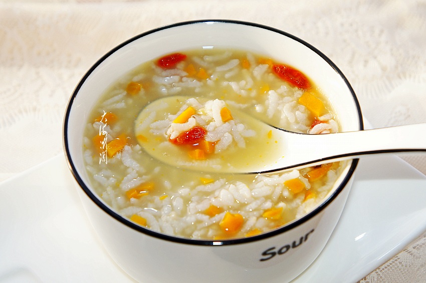 寒冷的冬天,每日早起,空腹胃虚,喝上一大碗粥,即使肠胃得到滋养,又不会增加消化系统的负担,更不会导致肥胖。食粥还可以辅助治疗各种疾病,保健养生,延年益寿。天气寒冷,人体的热量消耗就多,饮食中的热能需要相应增加。要多吃一些富含维生素和膳食纤维类的食物。这款杂粮粥特别适合冬季饮食,8种米加南瓜和枸杞子,这些食材都含有丰富的碳水化合物、维生素和膳食纤维,有利于养心血,健脾胃,润肺燥,养肝明目,强健身体。