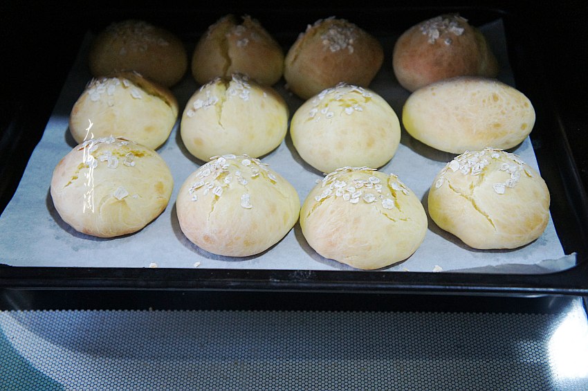 出炉,有点开口笑的感觉呢,咨询朋友,说是烤制中间要翻面,我没翻面,可能问题出在这里了。不过开口还是蛮好吃的,可有面味了。