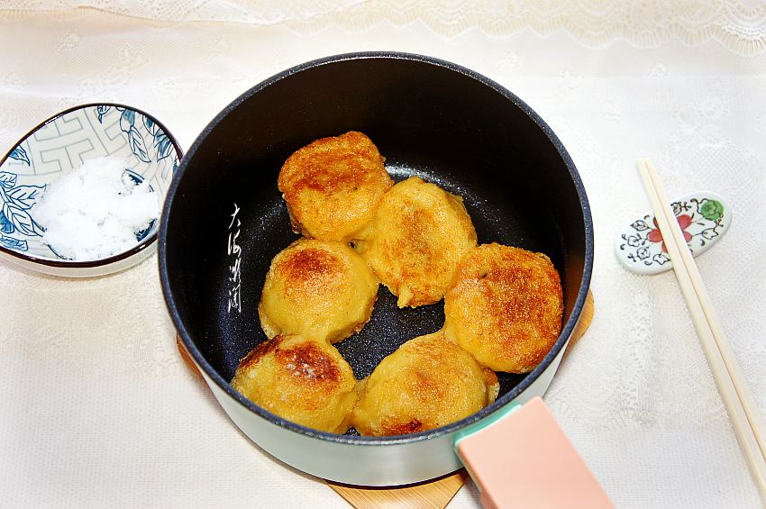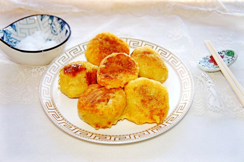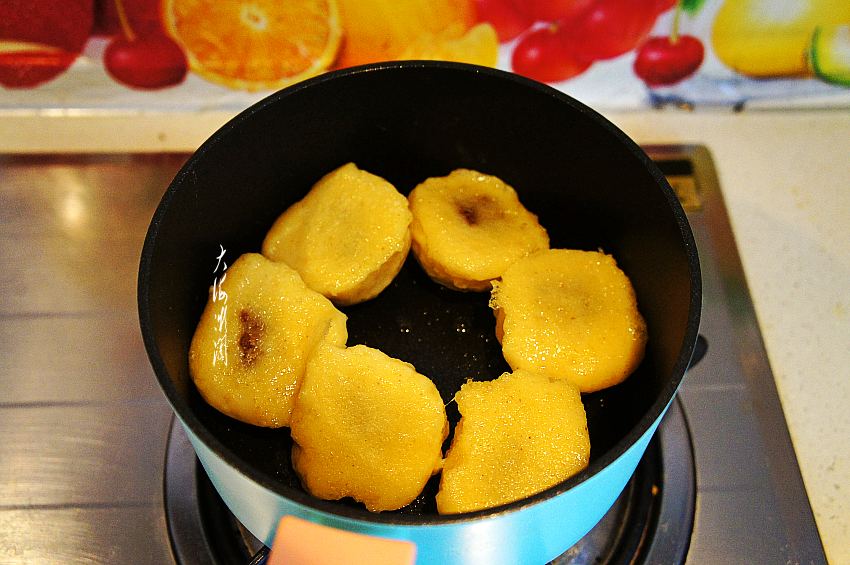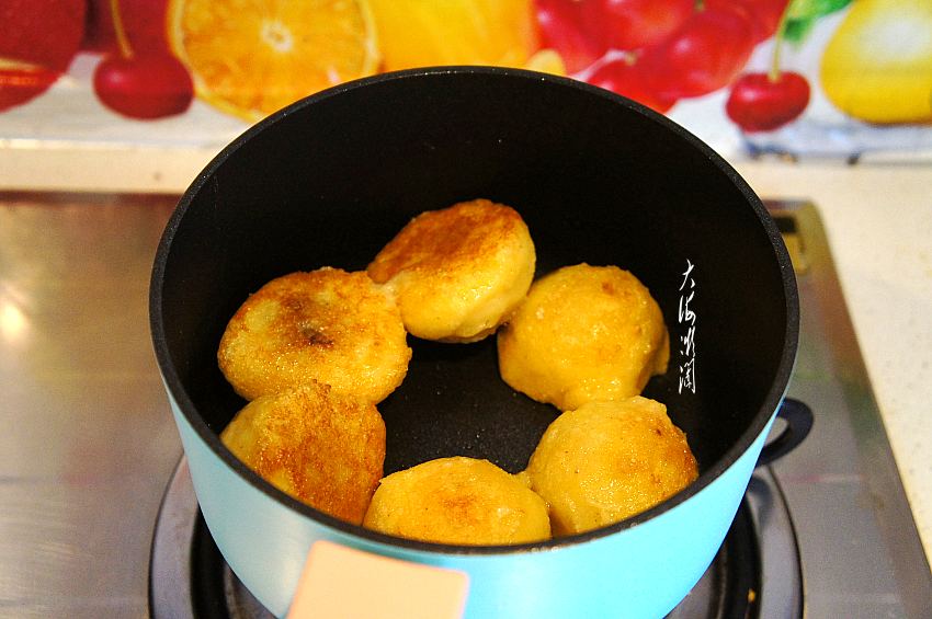 可以多番两次,直至粘豆包两面煎至焦脆的时候就可以关火了