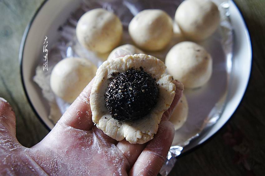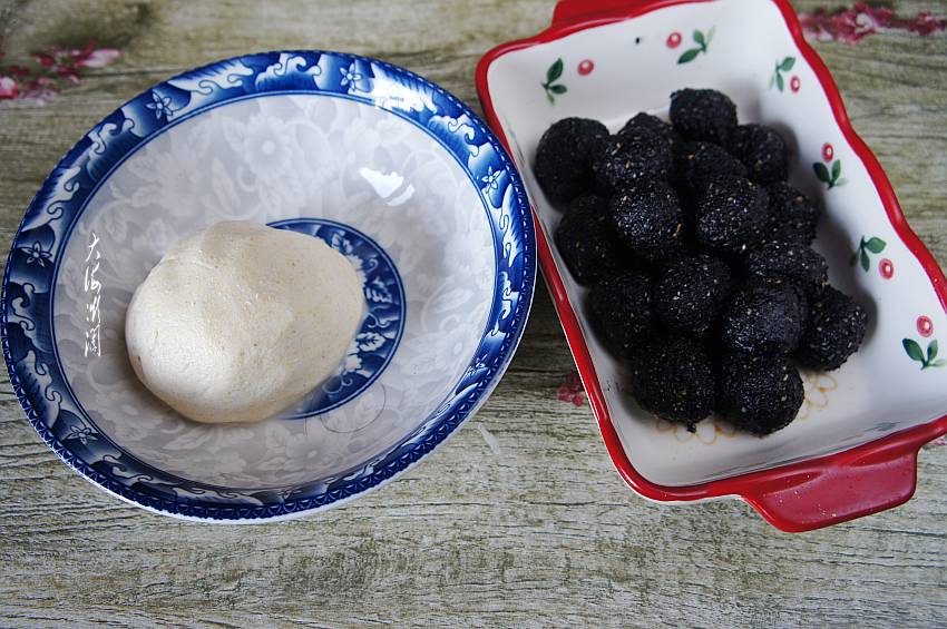 提前以前晚上将已发酵好的黄米面团从冰箱冷冻室取出来解冻,黑芝麻馅也是提前准备好的,做法也不难,已经分享过了。