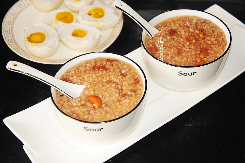 这粥就是高粱米粥,估计很多南方人都没见过,但是说道高粱酒大家就都熟悉了,把高粱磨成米就可以煮粥了,高粱米网上很容易买到。高粱米自古就有“五谷之精,百谷之长”的美誉。记得我们小时候,这种米和大碴子一样,是日常的主要粮食,比小米多,因为比较而言,玉米和高粱更高产。我今天煮的高粱米是黏高粱米粥,高粱米的一种,也叫白高粱米,口感特别好,脆嫩爽滑,吃起来就像夏天的嫩玉米一样,糯糯的特别好吃。与咸鹅蛋可是绝配,没有菜也能吃下一碗粥。