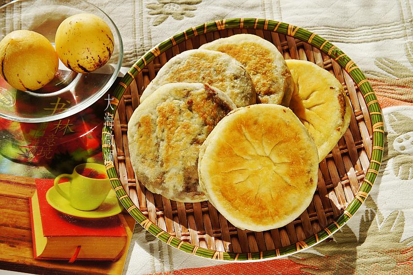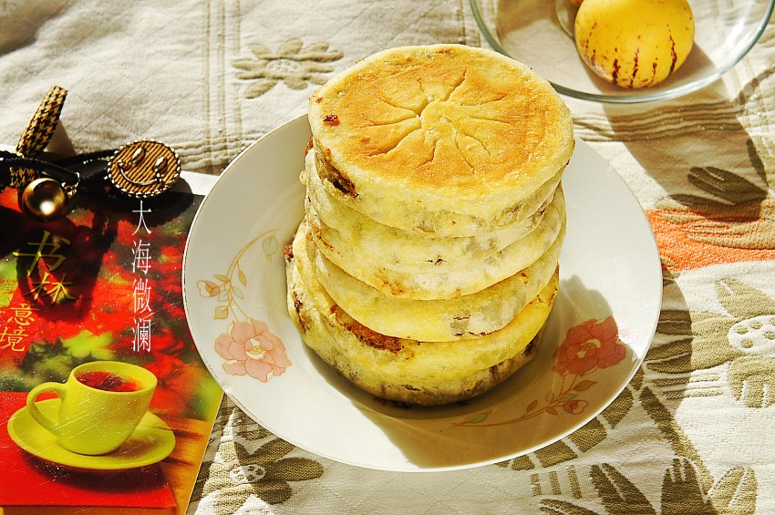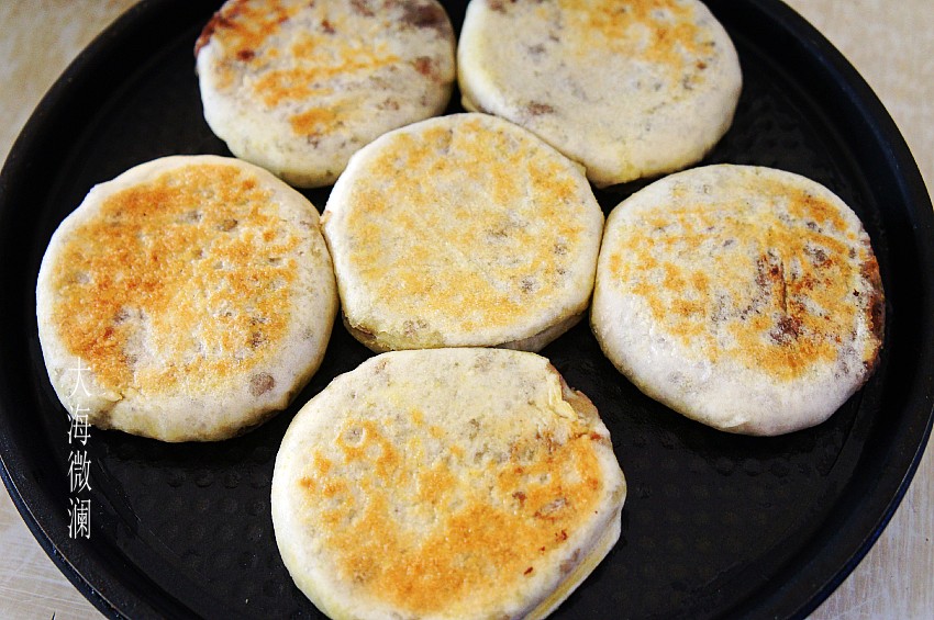大约3分钟左右,打开锅盖,豆馅饼就烙好了。