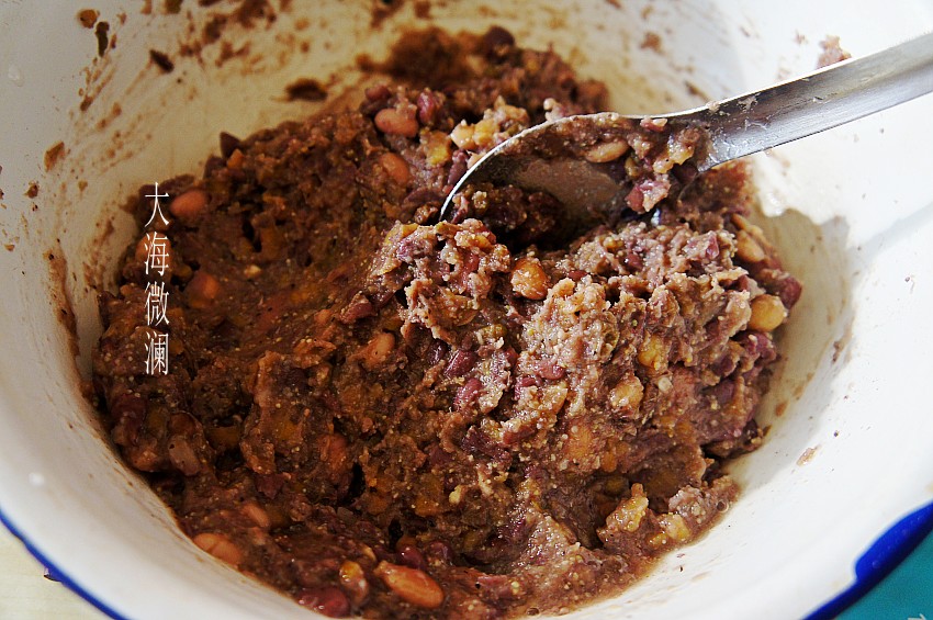 搅拌均匀,可以看到这豆馅中还有不少的豆粒,可香了。