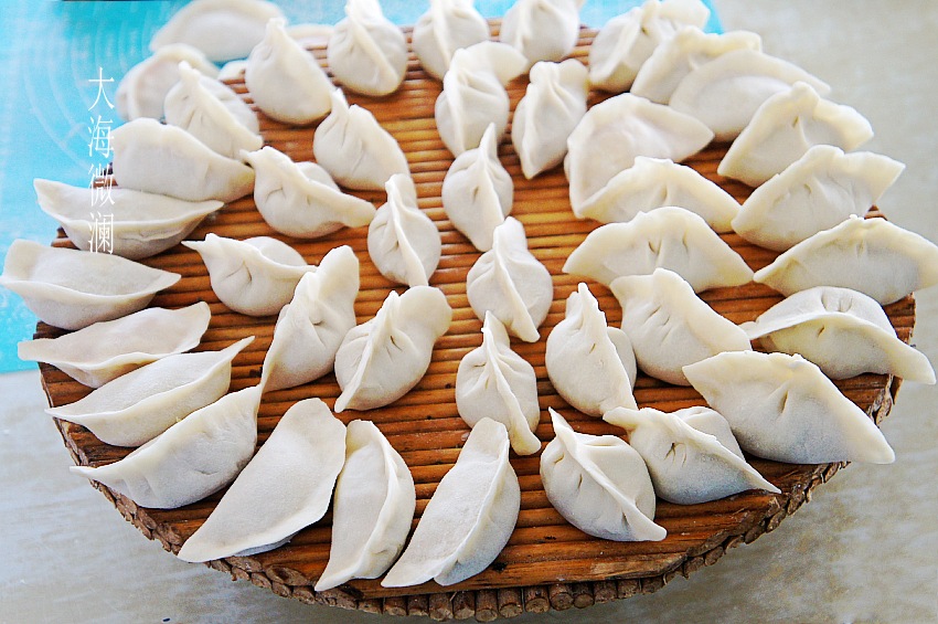 5、煮饺子:锅中加入适量多的水,水开后下入饺子,翻开后点入冷水,第二次翻开再点入冷水,第三次翻开即可出锅,饺子煮的恰到好处。出锅装盘,开餐!