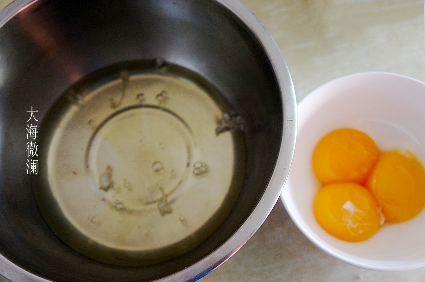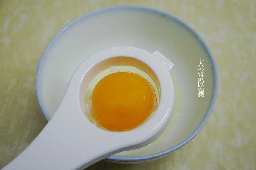 蛋白蛋黄分离后,先处理蛋黄,这鸡蛋是姐家自家养殖的小鸡下的柴鸡蛋,蛋黄特别黄,纯绿色食物,营养又美味。