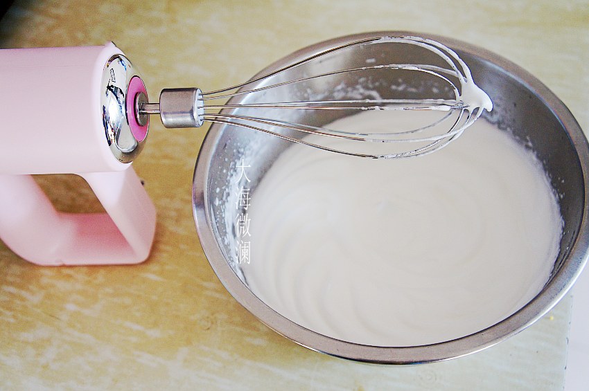 蛋白打发至提起打蛋头能看到直立的小三角,就OK啦。