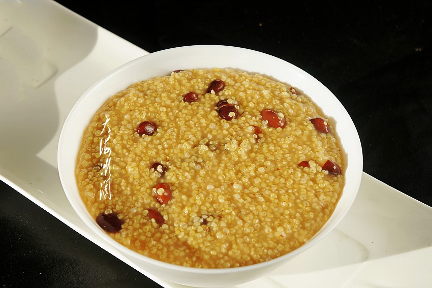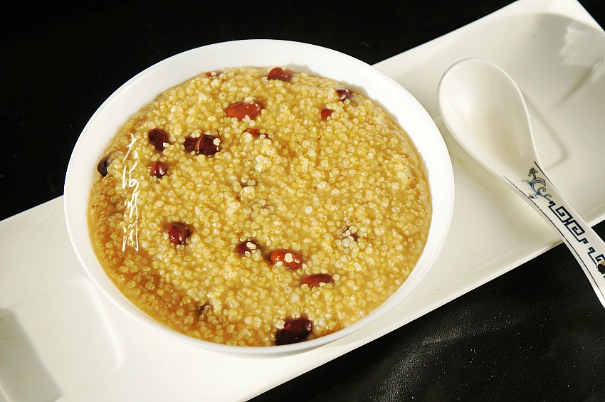 腊八粥的食材很多,主要有糯米、大米、黑米、红豆、花生、小米、板栗、葡萄干、桂圆、莲子、红糖、坚果碎等,南、北方所用食材和口感不尽相同。在小寒这样寒冷的节气吃一碗食材丰富的热粥,既能增强食欲,还能暖胃驱寒。今天要给大家分享的这道腊八粥既不是糯米粥,也不是多种米豆加上干果粥,而是我小时候最馋的大黄米粥,现在想想都流口水的粥。