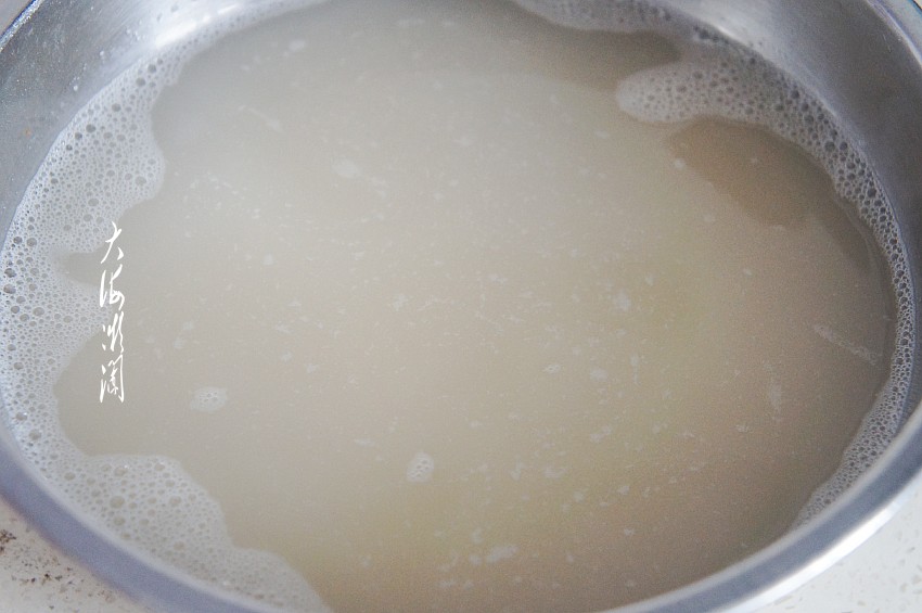大黄米加入盆中,加入适量的水反复淘洗干净。