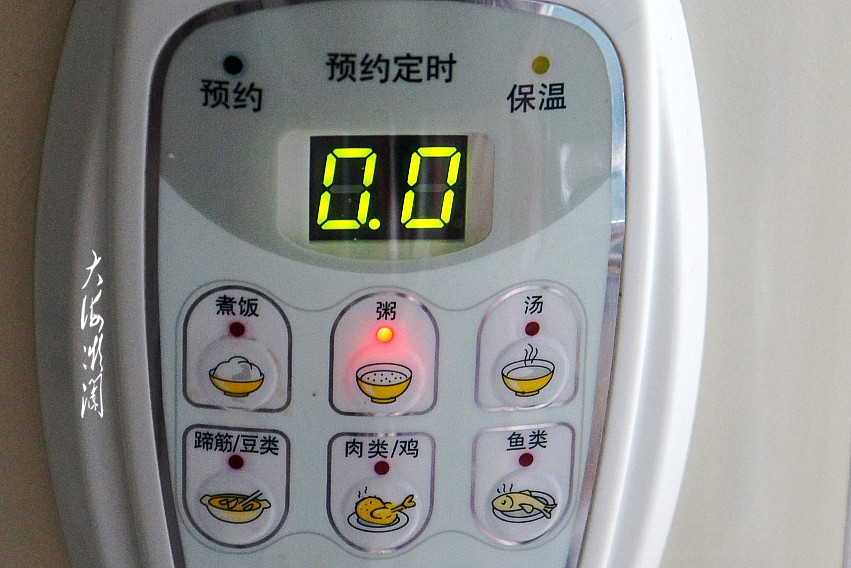 利用浸泡大黄米的时间煮芸豆,芸豆淘洗干净,放入压力锅中,加入适量的水,设置煮粥功能,启动开关。