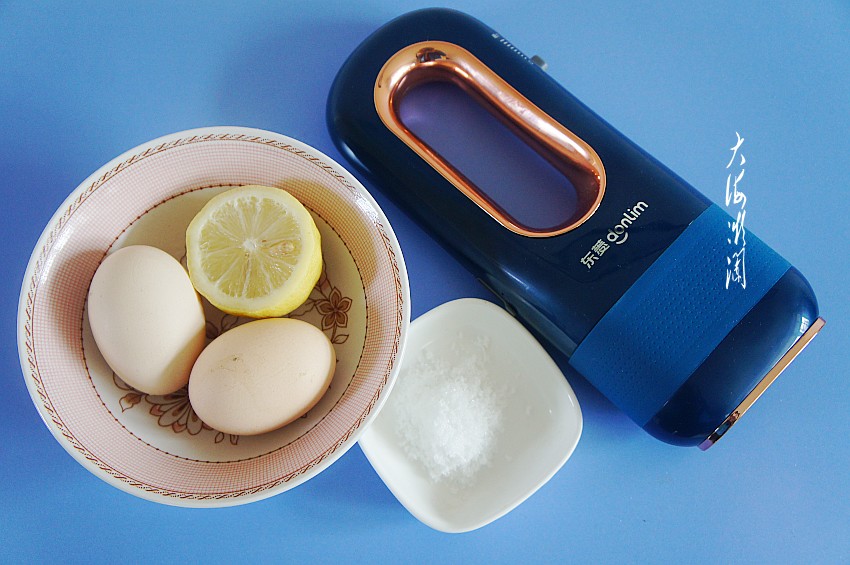 准备食材:两个鸡蛋最好选择中小个头的新鲜鸡蛋,更容易打发。白糖可以选择白砂糖,没有柠檬可以滴几滴白醋。