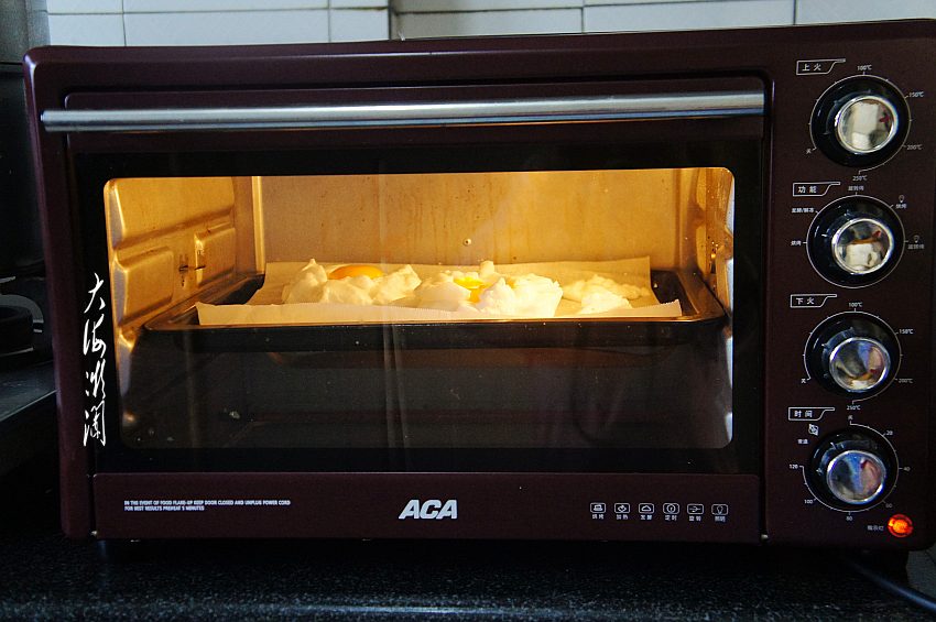 放入蛋黄,烤箱提前上下火160度预热5分钟左右。