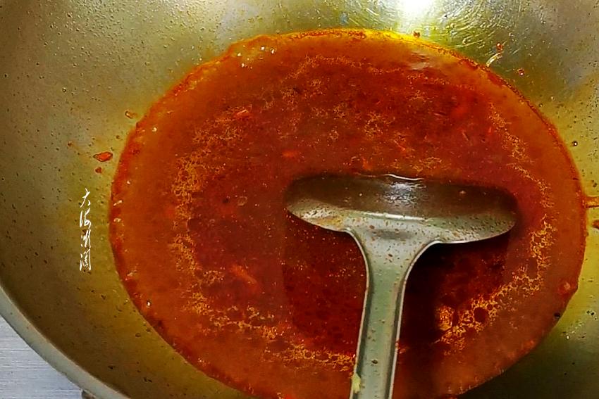 第二步:锅中加入少许油,爆香葱、姜、蒜末,加入麻婆炒酱炒一下,也可以不炒,我觉得炒一下更香。加入适量的水,大火烧开。