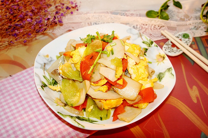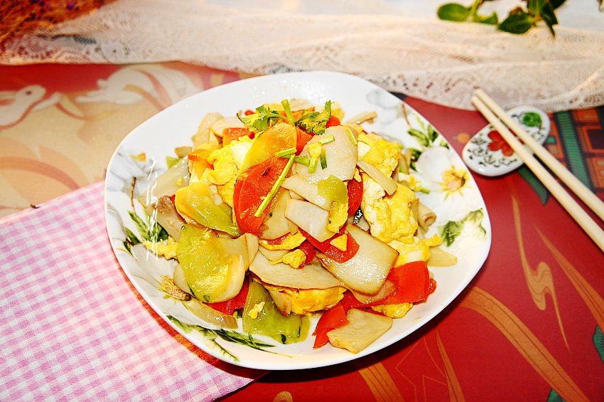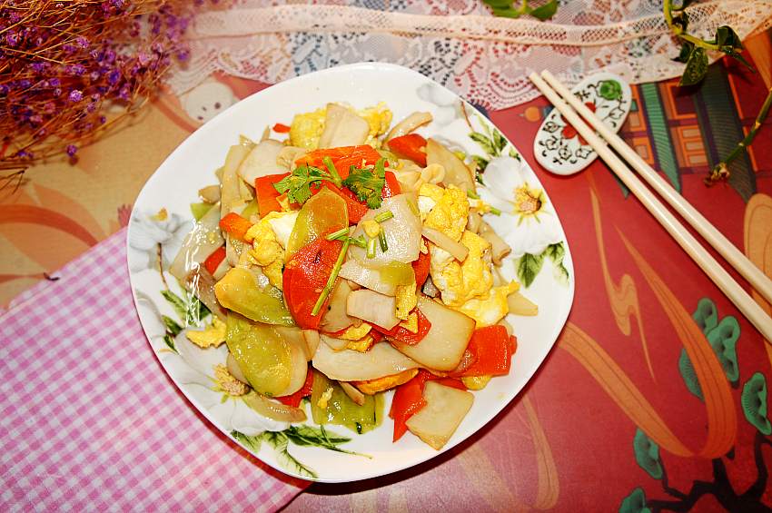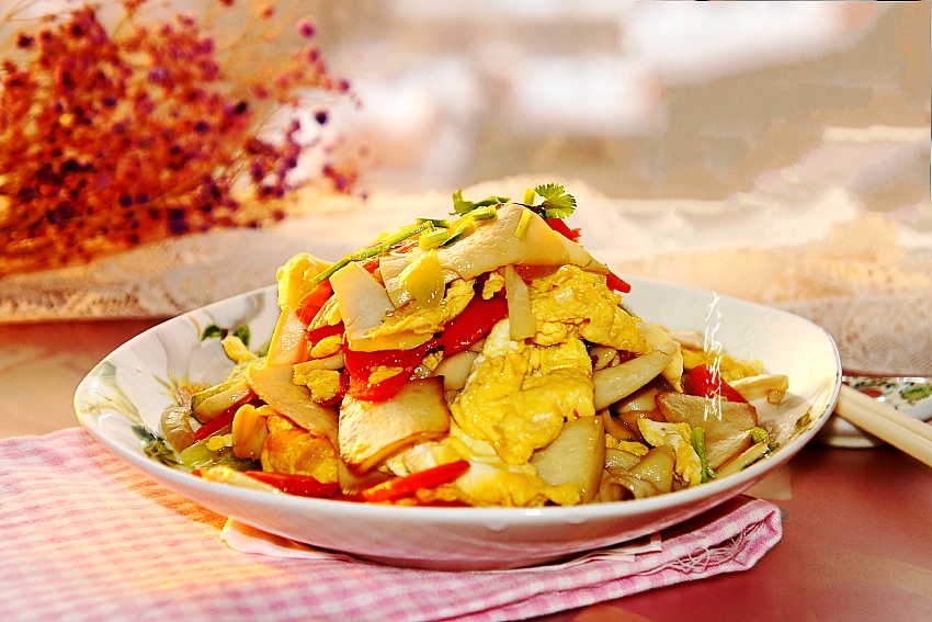 杏鲍菇,很美味的一种食物,零脂肪、低热量、富含人体所需的多种氨基酸及营养物质,有提高人体免疫力的功效,是很适合减脂期吃的食物!小炒杏鲍菇,搭配了素有“小人参”美誉的胡萝卜、被称为"厨房里的美容剂”的黄瓜和被人们称为“理想的营养库”的鸡蛋,简简单单的一炒,味道清淡且鲜美,营养丰富还美容,低脂低卡颜值高还减脂,怎么吃都吃不腻。喜欢的朋友赶紧试试吧。