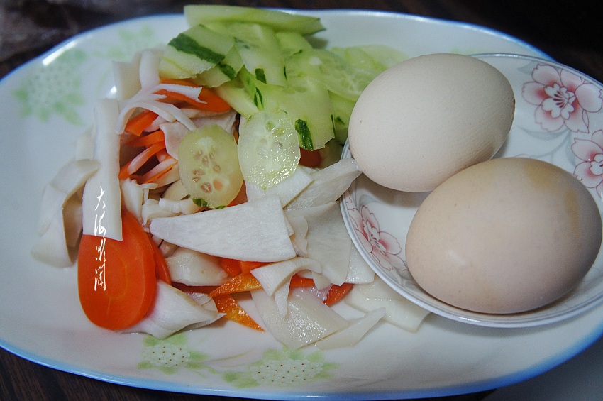 【小炒杏鲍菇】杏鲍菇1根;胡萝卜半根;黄瓜半根;鸡蛋2个;油适量;葱适量;五香粉适量;生抽适量;鲍汁蚝油适量。