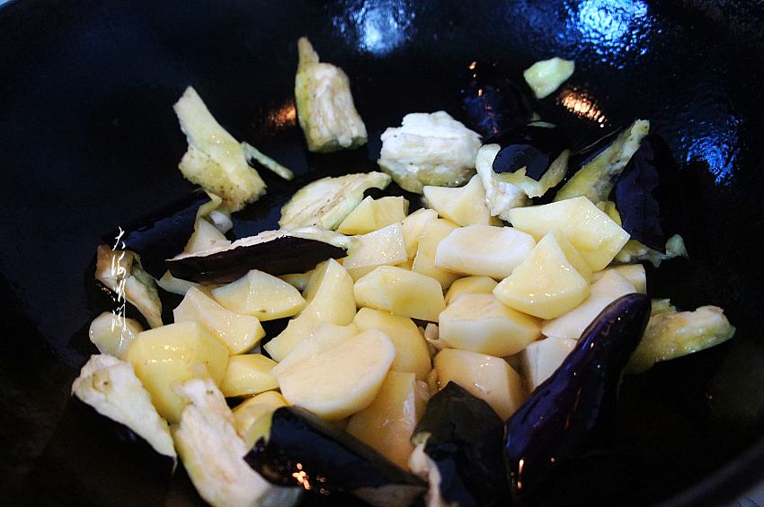 需要提醒注意的是茄子不要切块,用手掰成块,土豆切滚刀块。这道土豆炖茄子的关键是用大酱炖才好吃,也是东北菜的特点。