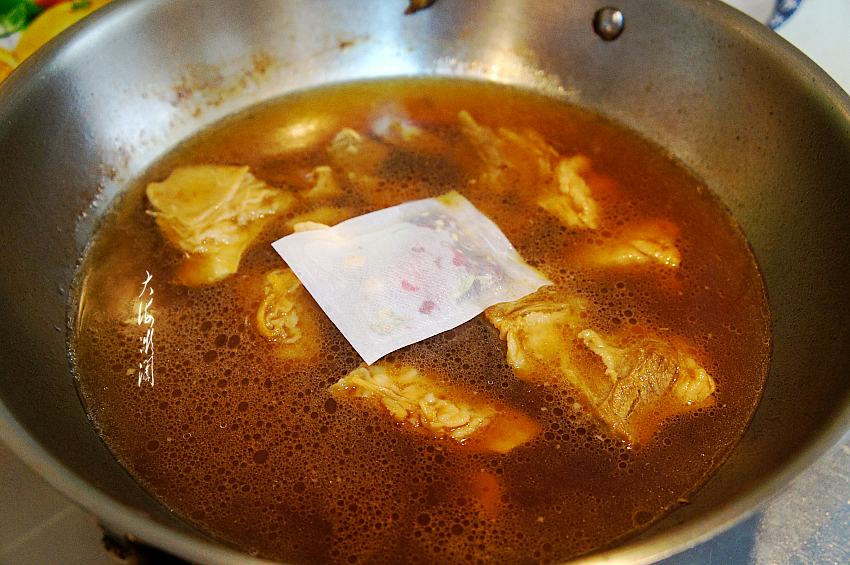 加入适量多的水,炖排骨时间略长一点,最好中间不加水,必须加水的话,加点开水。调料包过冷水冲洗一下,直接放入锅中,大火烧开,转中火炖熟。